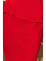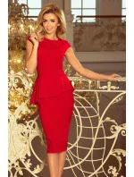 Dámské šaty 192-5 NUMOCO - červená barva - krátké rukávy - kulatý výstřih - délka pod kolena - velmi decentní, vhodné pro mnoho příležitostí