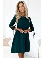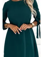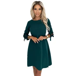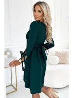 Dámské šaty 195-11 ALICE NUMOCO - zelená barva - z vysoce kvalitního materiálu - zakulacený výstřih - s mašličkami na rukávech - s vázáním vzadu na mašli - rozšířený střih