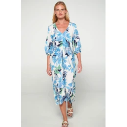 Dámské šaty 20417 Ecru s modro zelenou potisk - Vamp