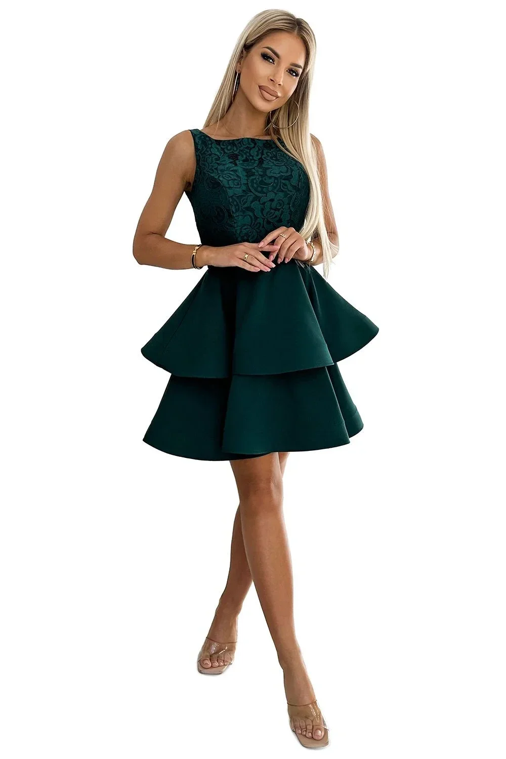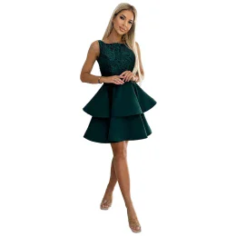 Dámské šaty 205-4 LAURA NUMOCO - zelená barva - bez rukávů - délka sukně nad kolena - vyšívaná horní část - dvojitá sukně