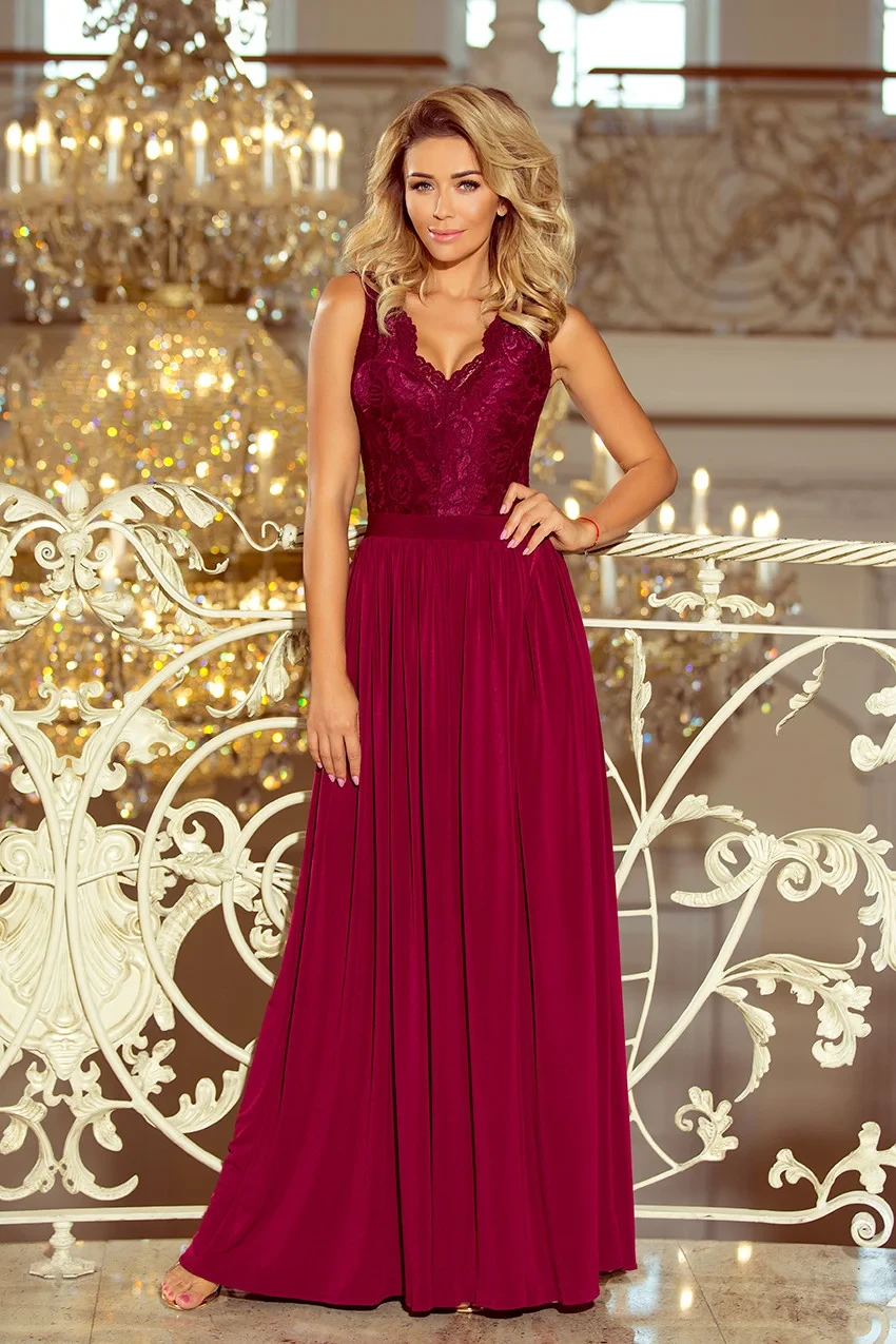 Dámské šaty 211-2 LEA NUMOCO - bordó barva - vyrobené z kvalitního a příjemného materiálu na dotek - bez rukávů - výstřih do tvaru "V" - rozparek