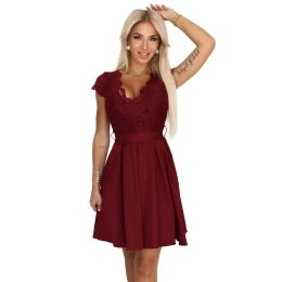Dámské šaty 242-5 Anna NUMOCO - bordó barva - elastický materiál - krátké rukávy - krajkový vrchní díl - sukně od boku směrem dolů se rozšiřuje