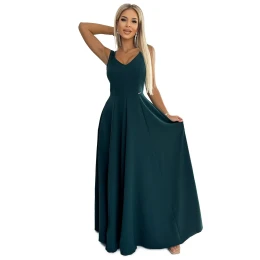 Dámské šaty 246-5 CINDY NUMOCO - zelená barva - bez rukávů - hluboký výstřih - maxi délka sukně - pohodlný střih
