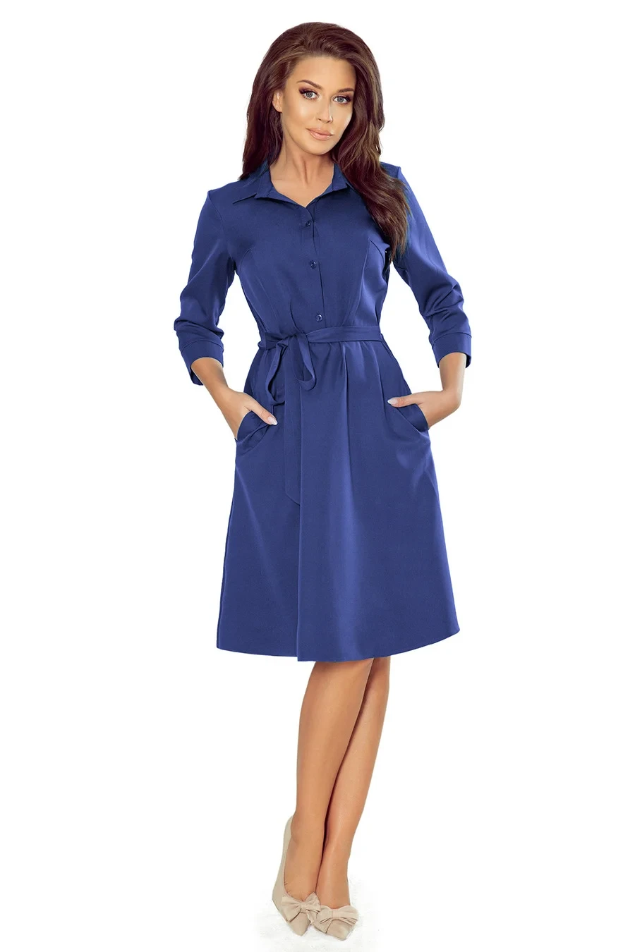 Skvělé šaty 286-2 Sandy Numoco - košilové šaty královsky modré barvy - zapínání na knoflíky - s tříčtvrtečními rukávy - z příjemného málo elastického materiálu na dotek - délka ke kolenům