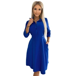 Dámské šaty 286-6 SANDY NUMOCO - modrá barva - košilové šaty - zapínání na knoflíky - s tříčtvrtečními rukávy - z příjemného málo elastického materiálu na dotek - délka ke kolenům