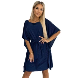 Dámské šaty 287-25 SOFIA NUMOCO - tmavě modrá barva - volnějšího střihu "motýl" - tříčtvrteční rukávy - v pase na zavazování - délka ke kolenům