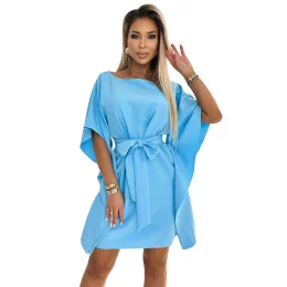 Dámské šaty 287-26 SOFIA NUMOCO - modrá barva - volnějšího střihu "motýl" - tříčtvrteční rukávy - v pase na zavazování - délka ke kolenům