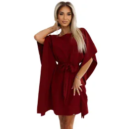 Dámské šaty 287-34 NUMOCO - bordó barva - volnějšího střihu "motýl" - tříčtvrteční rukávy - v pase na zavazování - délka ke kolenům