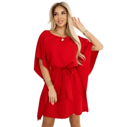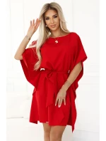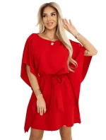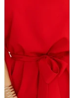 Dámské šaty 287-35 SOFIA NUMOCO - červená barva - volnějšího střihu "motýl" - tříčtvrteční rukávy - v pase na zavazování - délka ke kolenům