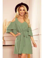 Dámské vzdušné šaty 292-6 Numoco - volnější střih - dvojité šifónové rukávy - široká ramínka - stahování v pase