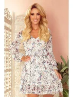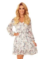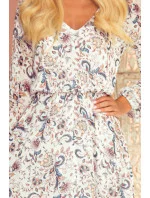 Dámské šaty 295-2 BAKARI NUMOCO - vícebarevná barva - z příjemného materiálu - dlouhé, lehce nabírané rukávy - sukně ke kolenům s ozdobným kanýrkem