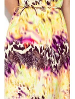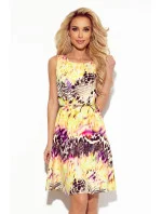 Dámské šaty 296-1 VICTORIA NUMOCO - vícebarevná barva - z příjemného materiálu - bez rukávů - uzoučký pásek s mašličkou - délka sukně ke kolenům