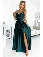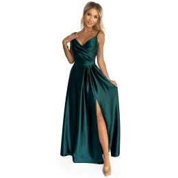 Dámské šaty 299-9 Numoco - s tenkými ramínky - vyprofilovaný dekolt - maxi sukně s rozparkem