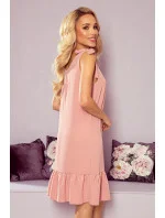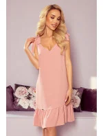 Dámské šaty 306-3 Rosita NUMOCO - starorůžová barva - volný střih - široká ramínka s mašličkami - volány na spodním okraji