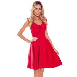 Dámské šaty 307-1 Pola NUMOCO - červená barva - výstřih ozdobený volánky - široká ramínka - sukně s řasením