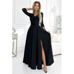 Dlouhé maxi šaty Amber s krajkou v černé barvě