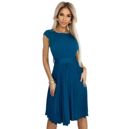Dámské šaty 311-17 LILA NUMOCO - oceán barva - řasený střih - krátké rukávy - délka sukně nad kolena - kapsy - zavazování na pásek s velkou mašlí - zapínání vzadu na skrytý zip