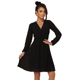 Dámské šaty 313-17 ISABELLE NUMOCO - černá barva - řasený střih - otevřený dekolt - dlouhé rukávy - délka sukně nad kolena
