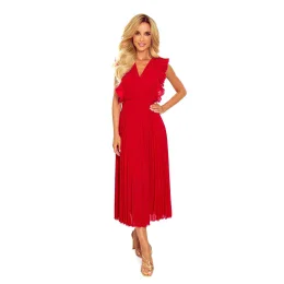 Dámské šaty 315-3 EMILY NUMOCO - červená barva - řasený střih - krátké rukávy - výstřih ve tvaru "V" - délka 7/8 - zapínání vzadu na skrytý zip