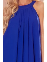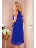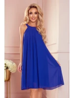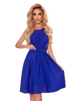 Dámské šaty 350-9 ALIZEE Numoco - s vázáním kolem krku a na zádech - bez rukávů - z šifónu - zavazování kolem pasu - délka nad kolena - dole rozšířená