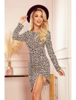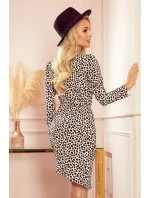Originální dámské šaty 352-1 Numoco - asymetrické šaty - v dolní části zakončené volánky - řasení ve výstřihu a na ramenou - leopardí potisk