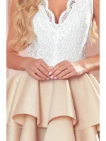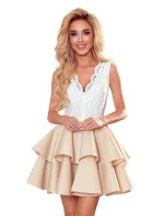 Dámské šaty 368-2 ZLATA NUMOCO - béžová barva - dvoubarevné šaty - krajkový výstřih - široká ramínka - sukně s volány