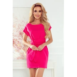 Dámské šaty 370-1 NUMOCO - fuchsiová barva - volnějšího střihu - krátké rukávy - v pase na zavazování - délka nad kolena