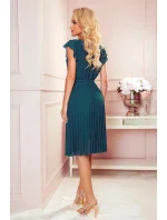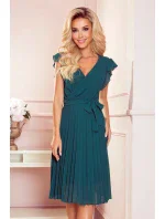 Dámské šaty 374-1 POLINA NUMOCO - zelená barva - elegantní dámské šaty - bez rukávů - ramena ozdobená volánky - překřížený výstřih - v pase na pásek - rozšířená šifónová sukně