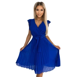 Dámské šaty 374-4 POLINA Numoco - elegantní dámské šaty - bez rukávů - ramena ozdobená volánky - překřížený výstřih - v pase na pásek - rozšířená šifónová sukně