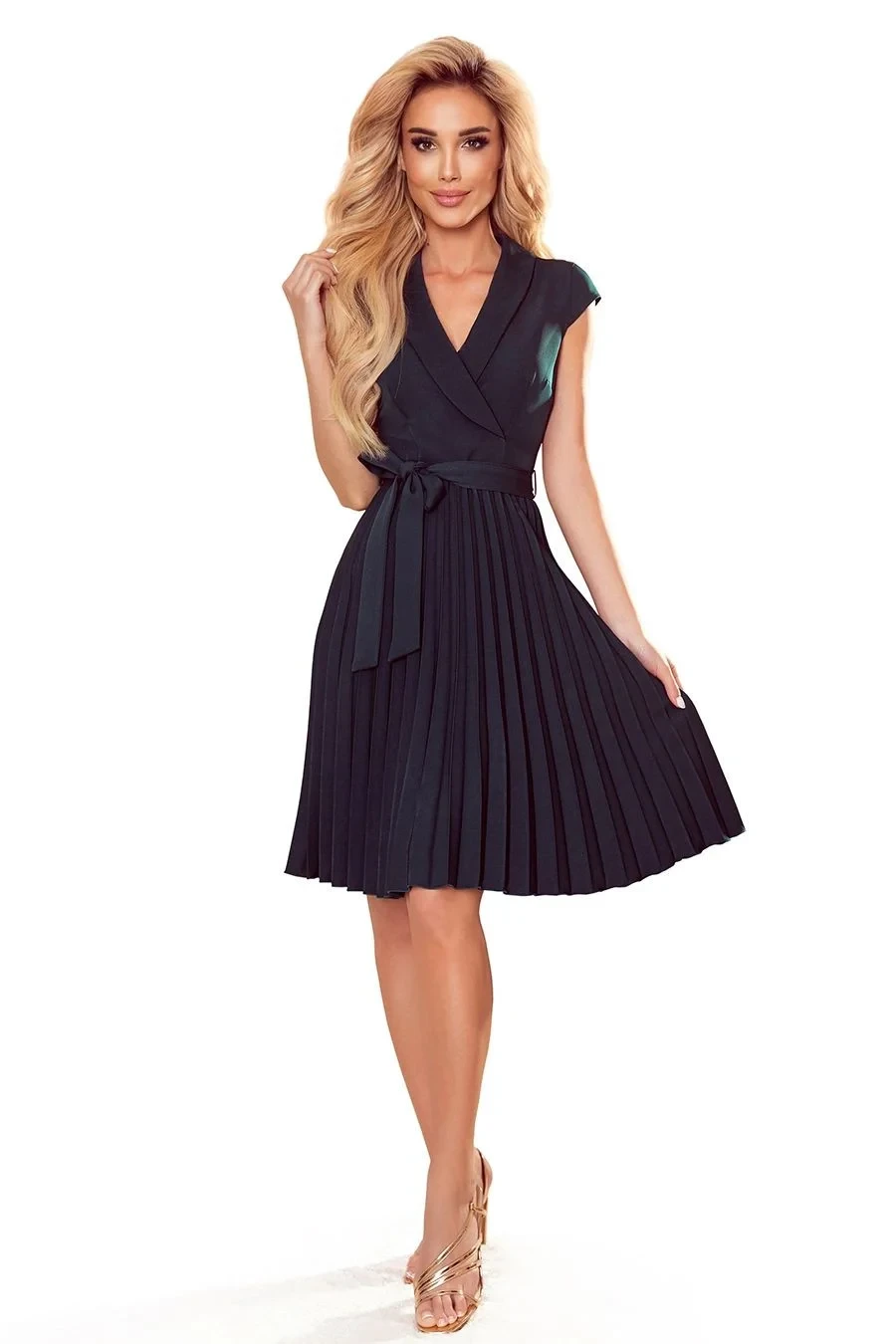 Dámské šaty 385-3 WENDY NUMOCO - zelená barva - midi šaty - krátké rukávy - na zavazování - překřížený dekolt - řasená sukně