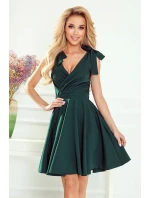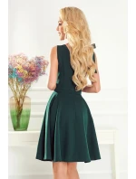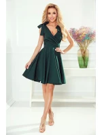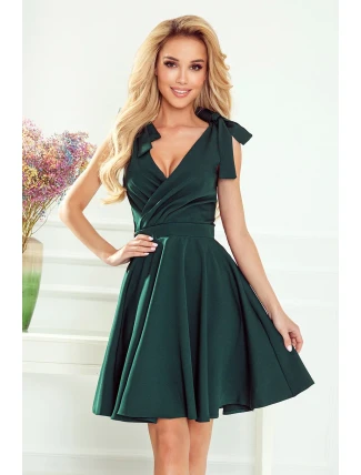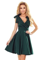 Dámské šaty 393-1 ROSALIA NUMOCO - zelená barva - elegantní dámské šaty - bez rukávů - ramena ozdobená mašličkami - psaníčkový výstřih - rozšířená sukně