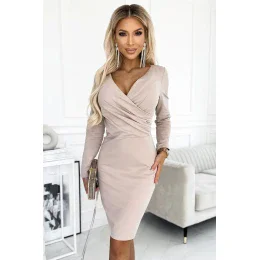 Dámské šaty 398-3 Numoco - elegantní dámské šaty - dlouhé rukávy - psaníčkový výstřih - z lehce elastického bavlněného materiálu