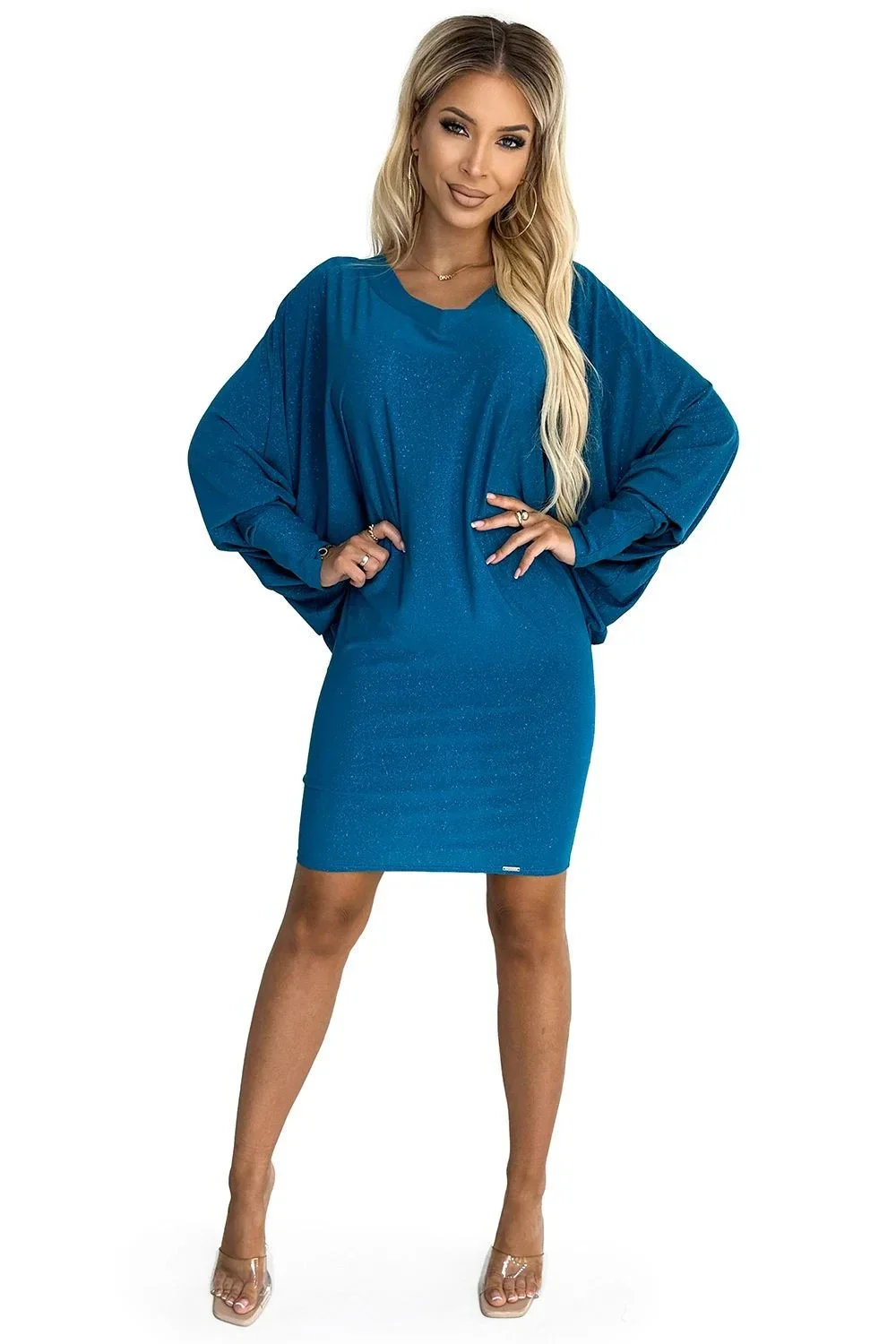 Dámské šaty 402-3 Numoco - sexy dámské netopýří šaty - dlouhé rukávy - z elastického materiálu s brokátem - délka nad kolena