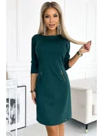 Dámské šaty 420-5 MARY NUMOCO - zelená barva - trapézová sukně - tříčtvrteční rukávy - vyrobené z příjemného elastického materiálu