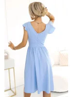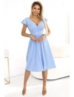 Dámské šaty 425-12 MATILDE NUMOCO - světle modrá barva - psaníčkový výstřih - krátké rukávy - mírně elastický materiál
