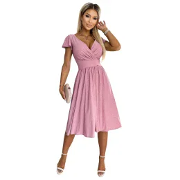 Dámské šaty 425-2 MATILDE NUMOCO - starorůžová barva - psaníčkový výstřih - krátké rukávy - mírně elastický materiál