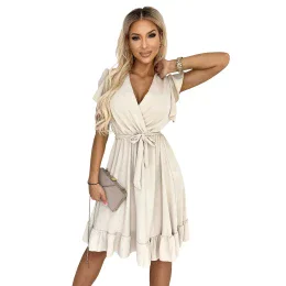 Dámské šaty 455-1 CORNELIA Numoco - řasené šaty z šifónu - překřížený dekolt - krátké rukávy s volánky - zavazování na pásek - volánky ve spodní části