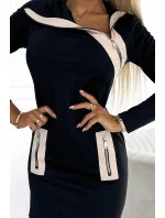 Dámské šaty 497-1 NUMOCO - černá barva - dlouhé rukávy - se třemi zipy na béžovém podkladu - z hrubšího elastického materiálu