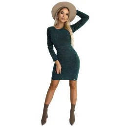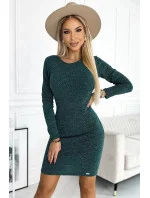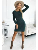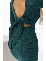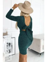 Dámské šaty 518-1 NUMOCO - zelená barva - z teplého svetrového materiálu - dlouhé rukávy - výstřih na zádech s velkou mašlí