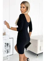 Dámské šaty 529-1 ELEONORA NUMOCO - černá barva - z elastického materiálu se třpytkami - tříčtvrteční rukávy - vykrojení na zádech - vypasované