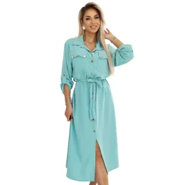 Dámské šaty 531-2 Numoco basic - mátová barva - košilový typ - zapínání na zlaté knoflíky - vázání v pase - zdobená kapsami - s límečkem