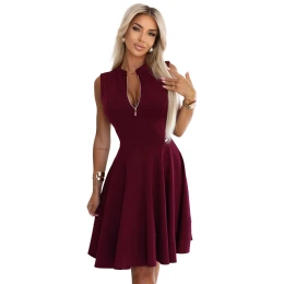 Dámské šaty 573-4 NUMOCO - bordó barva - z elastické silnější tkaniny - výstřih se zipem - sukně zakončená volánkem - perfektně sedí