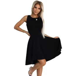 Dámské šaty 575-1 NUMOCO - černá barva - z elastického materiálu - široká ramínka - asymetrická sukně - zapínání vzadu na skrytý zip