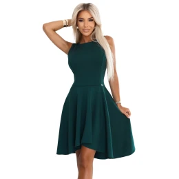 Dámské šaty 575-2 NUMOCO - zelená barva - z elastického materiálu - široká ramínka - asymetrická sukně - zapínání vzadu na skrytý zip