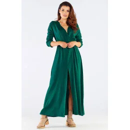 Maxi, mimořádně ženské šaty. Dlouhé rukávy a délka jsou ideální pro chladnější dny. V kombinaci s kozačkami a koženou bundou bude dokonalým řešením na rande, do práce nebo na setkání s přáteli. Zip na přední straně dodává šarm a ženskost. Vyrobeno z přírodní, tělu příjemné viskózy. Produkt je vyroben v Polsku.