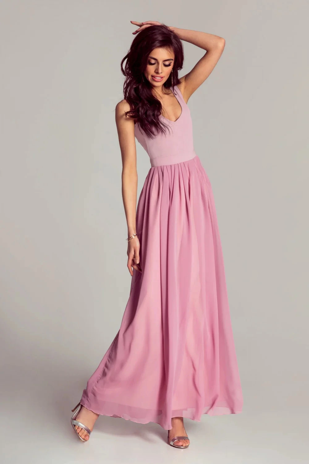 Společenské šaty značkové moderní střih s ozdobnými zipy na ramenou růžové - Růžová / XL - J&J