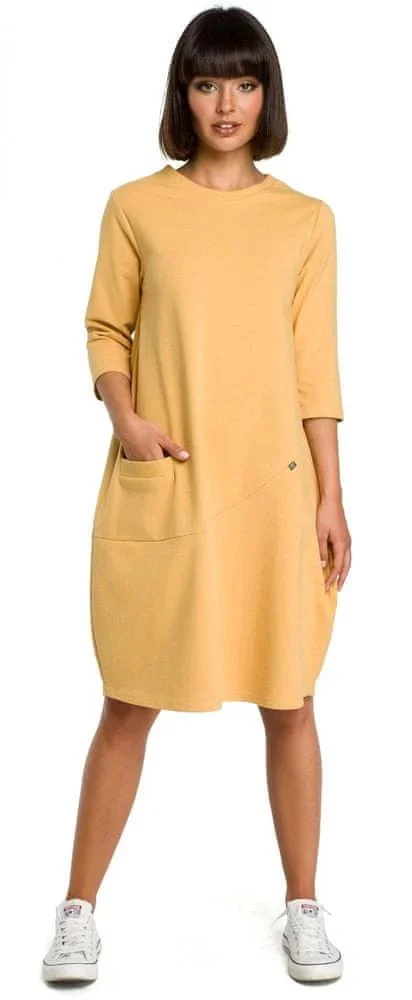 Pohodlné šaty s 3/4 rukávy. V chladnějších dnech můžete šaty použit jako tuniku ke kalhotám nebo leginám. Šaty mají kulatý výstřih a kapsičku v předu.