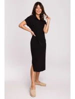 Tyto šaty mají mnoho tváří. Jednoduchá košile s límečkem a kapsami ve stylu safari na přední straně sahá do půli lýtek a má rozparky na bocích. Je volné a ležérní, ideální pro horké dny, zejména proto, že je vyrobeno z bavlny, která umožňuje pokožce dýchat. Shromážděné s páskem se v mžiku změní.