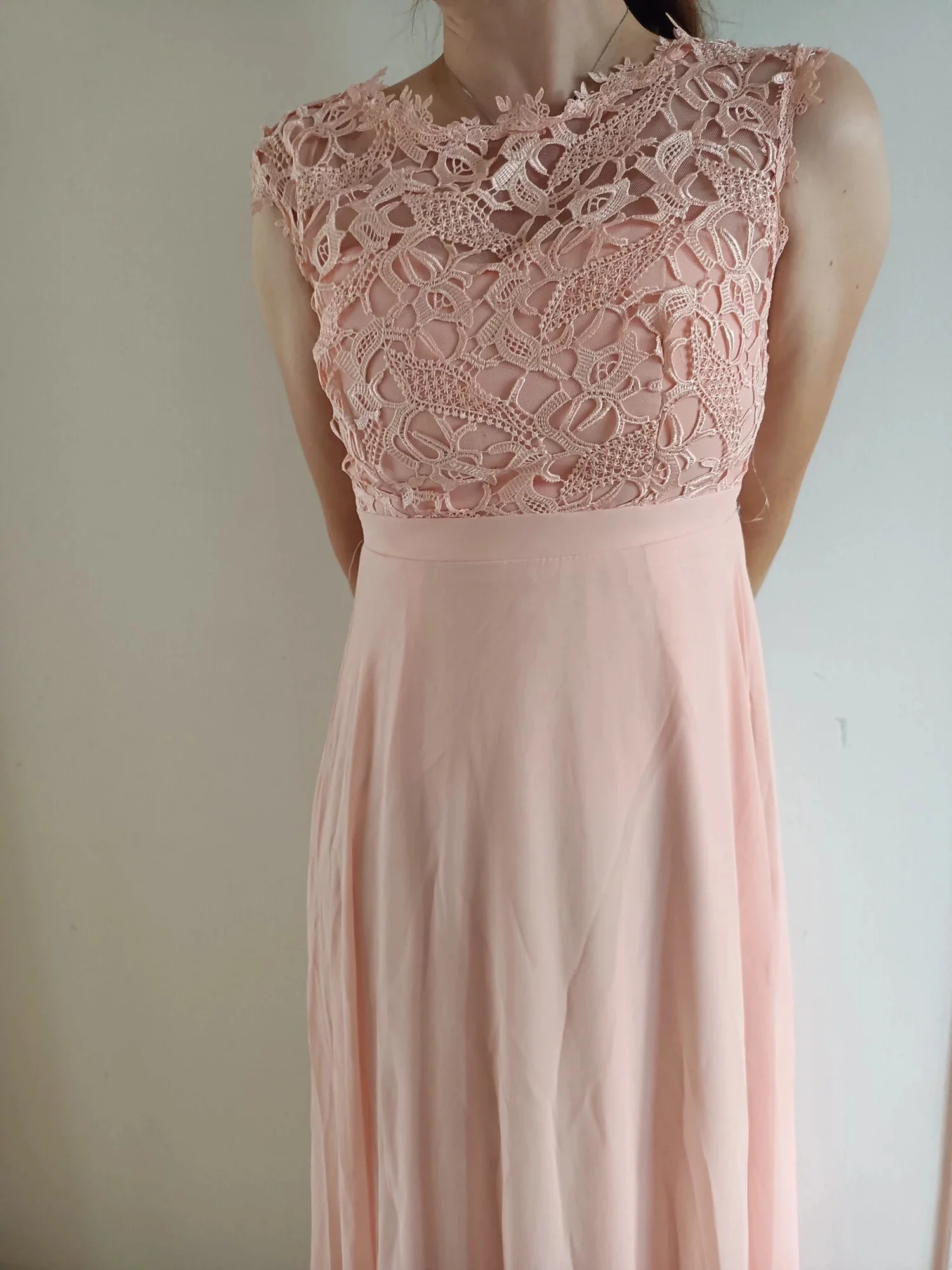 Společenské dámské šaty. Vrchní část z luxusní krajky. Zadní část šatů z prošívané gumy pro komfortní obepnutí postavy. Spodní část z růžového tylu. Délka až po zem.