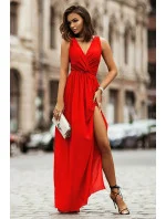 Neobyčejné šifonové maxi šaty, které udělají velkolepý dojem. Toto je naše nová Dolores, nechte se okouzlit jejím půvabem. Je tak lehká a vzdušná, že se s vámi bude při každém pohybu sexy pohupovat. Horní část šatů má vpředu i vzadu výstřih do V, díky kterému krásně zvýrazníte linii poprsí a zad. Pro lepší přizpůsobení je v pase všitá gumička a také šňůrka, která umožňuje dokonalé přizpůsobení šatů v pase. Boční rozparek dodává lehkost a zdůrazňuje opálené nohy. Dokonalý střih zaručuje pohodlí při nošení šatů. Dolores se skvěle hodí pro speciální akce. Bude také ideálním společníkem na procházky po pláži. Šaty byly navrženy a ušity v Polsku.